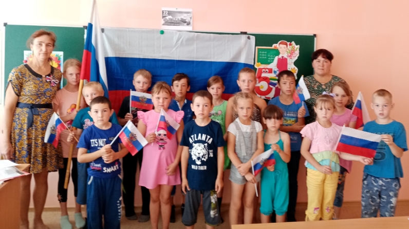 Мәдәният хезмәткәрләре башлангыч сыйныф укучылары өчен «Ак, зәңгәр, кызыл төс – дан һәм Җиңү символы"дип исемләнгән мәгълүмат сәгате үткәрделәр. Аның барышында балалар Россия флагы барлыкка килү һәм «тормыш» тарихыннан берничә кызыклы фактлар белделәр. Россия флагы төсе кызыл төс батырлыкны, зәңгәр — тугрылык, дөреслекне һәм күкне, ә ак — вөҗдан чисталыгын һәм тынычлыкны символлаштыра. Россия күге бүген һәм һәрвакыт тыныч һәм чиста булсын.
